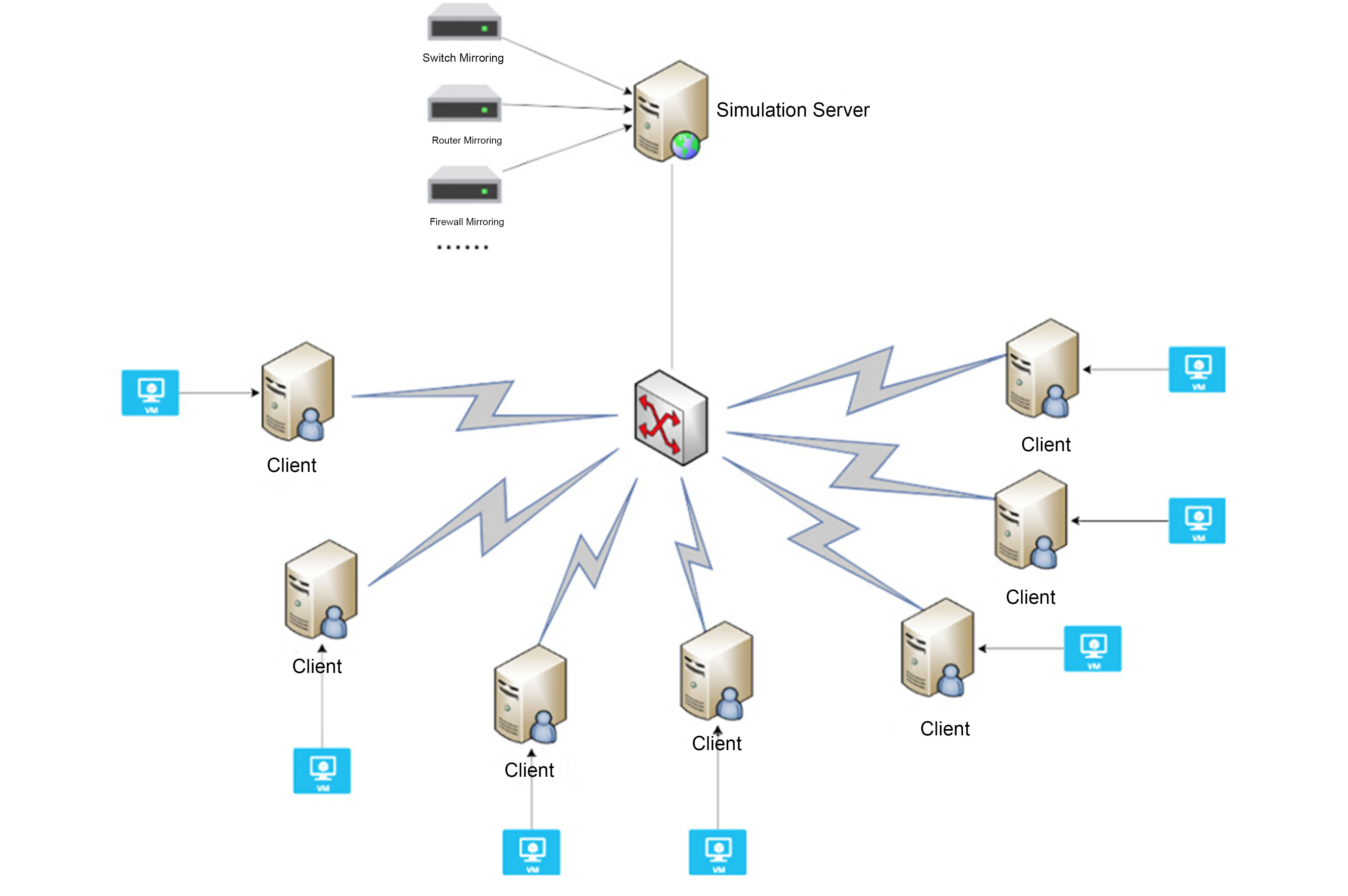 Clients can perform local device simulation through cluster deployment, sharing server computational load while providing visual operation of network panoramic views.