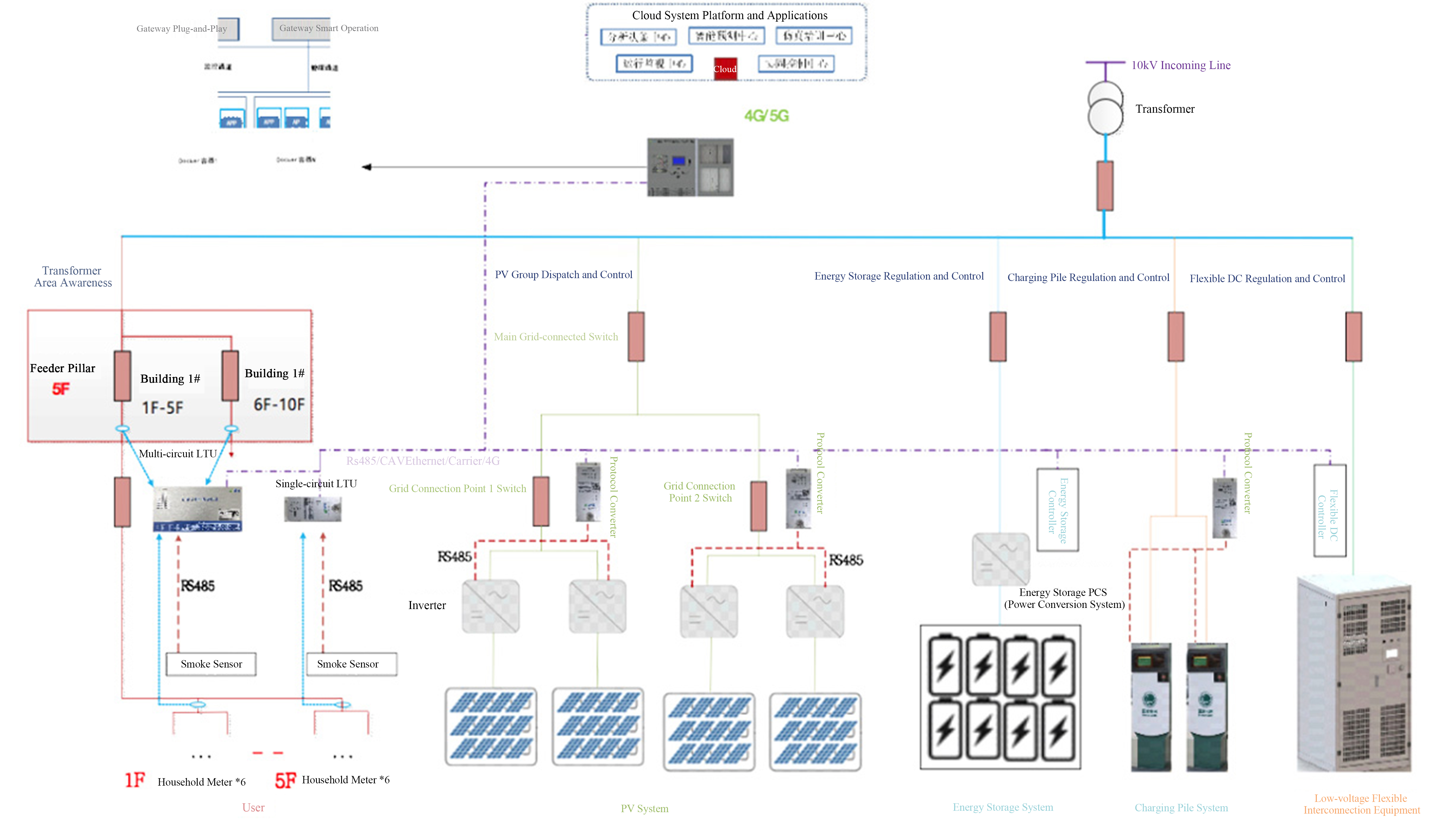The product is developed based on the Linux operating system and containerized architecture, utilizing virtualization technology to achieve application software decoupling and APP-based expansion, enabling a cloud-edge-end communication architecture. It supports multiple communication protocols, features rapid active and reactive power regulation, includes conventional protection trip functions, and supports microgrid control, achieving comprehensive management of photovoltaic-storage-charging-flexible devices.